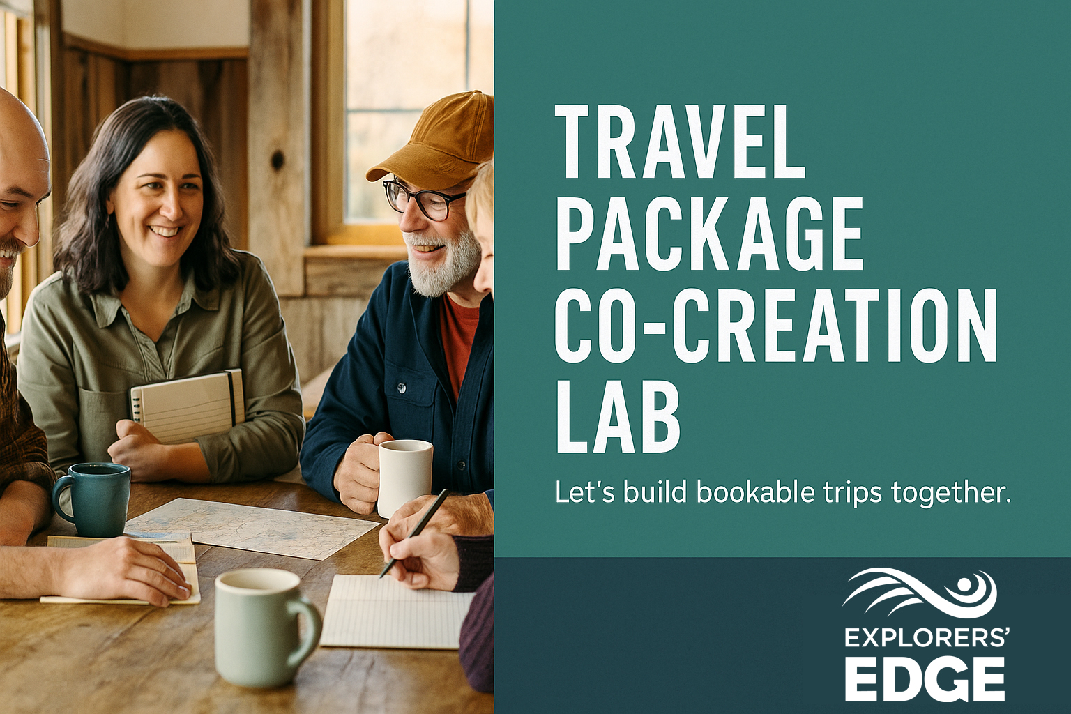 Purpose – The Travel Package Co-Creation Lab is a series of in-person and online sessions hosted by Explorers’ Edge to bring together local tourism businesses, guides, makers, and experience hosts to design market-ready travel packages for the region’s new Regenerative Travel Agency (TICO-licensed).